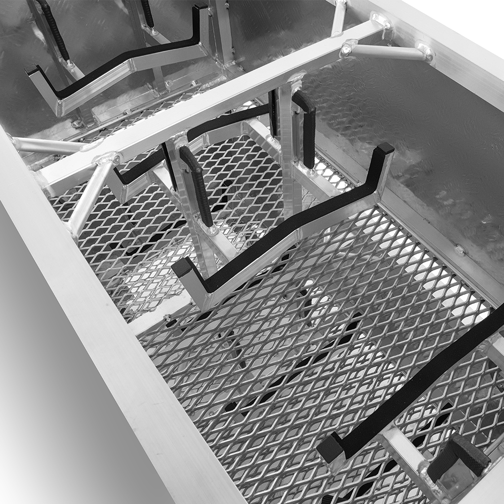 Wir stellen Ihnen den Armor Cart vor, die neue Lager- und Transportbox für bis zu vier Kettenzüge. Der aus leichtem und langlebigem Aluminium gefertigte Amor Cart ist in zwei Versionen erhältlich. Modell MAC-01-2100-A1 fasst 2x 1t Kettenzüge. Durch die kompakte und die Möglichkeit, die Container übereinander zu stapeln, reduziert sich das Transportvolumen im Vergleich zu Flight Cases um bis zu 50%. Darüber hinaus reduziert das offene Design die Luftfeuchtigkeit im Behälter und ermöglicht das schnellere Trocknen der Ketten und des Kettenzuges, was zur Vermeidung von Korrosion beiträgt.