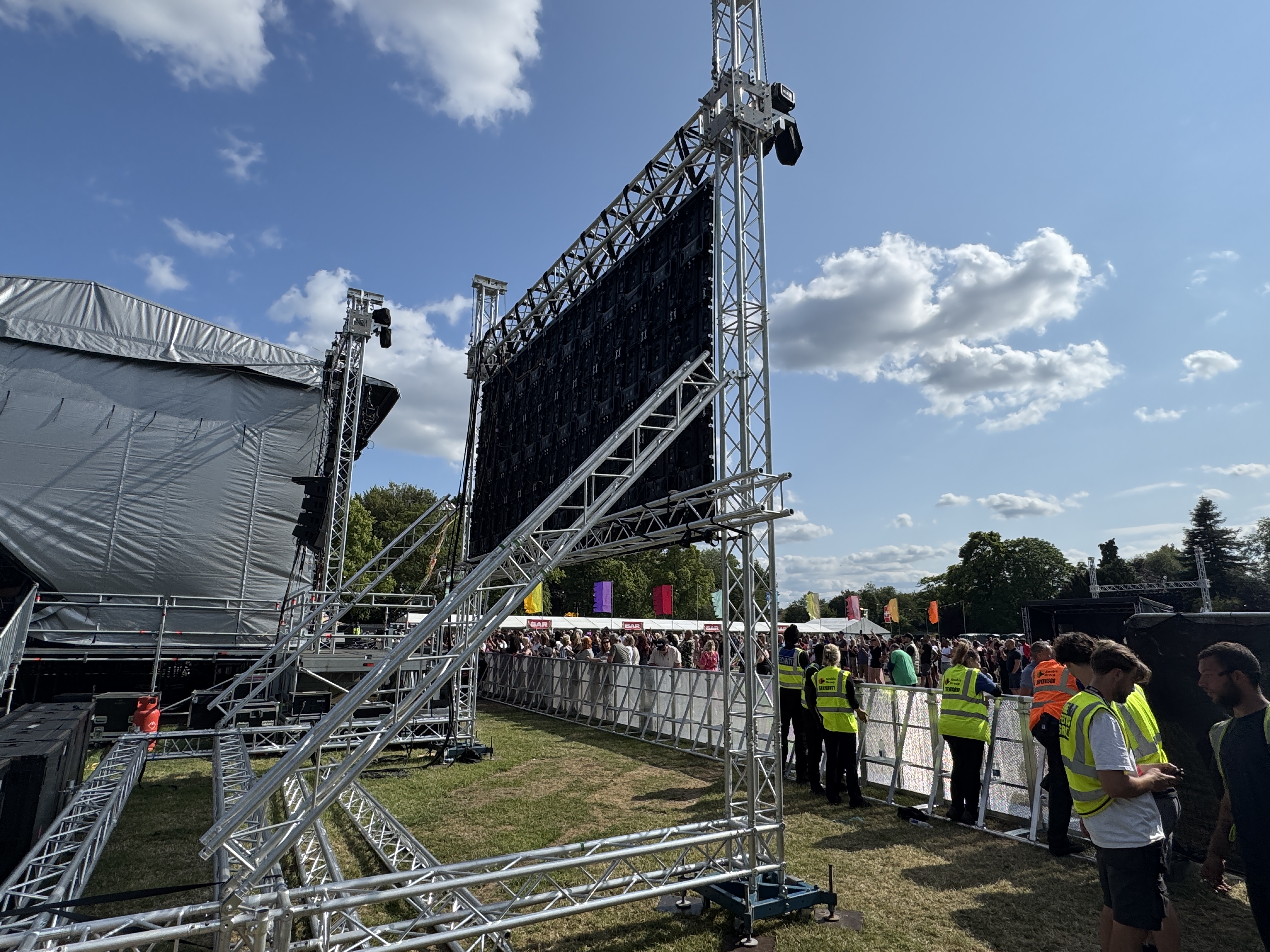 The SEL Live team have been providing full production support including staging, rigging, sound and lighting for the Park Series Festivals that are running across the UK this summer. The MILOS MR2K 12x10 roof structure at Abbey Park was supported by two 6x4 MILOS LSGO LED screen supports either side of the stage and one 6x4 MILOS LSGO LED screen support behind FOH delivering full video production and live stage feed throughout the event, ensuring audiences had an exceptional view at all times of artists on the stage.