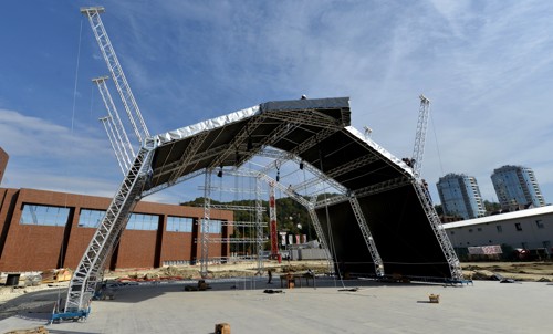 A key point from the investor was that everyone on stage must be protected from the weather. With this in mind, Milos engineers customized the roof system to be covered with PVC canopy on all three sides so the „bat" will always have its wings protecting those who grace its stage.